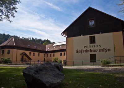 Penzion Šafránkův Mlýn je historický mlýn z 17. století byl citlivě zrekonstruován a dnes nabízí útulné zázemí. Nejbližší města jsou Tišnov (cca 20 km) a Brno (cca 40 km), což zajišťuje dobrou dostupnost. Celý areál působí jako oáza ticha, kde se příroda snoubí s pohodlím a historií.