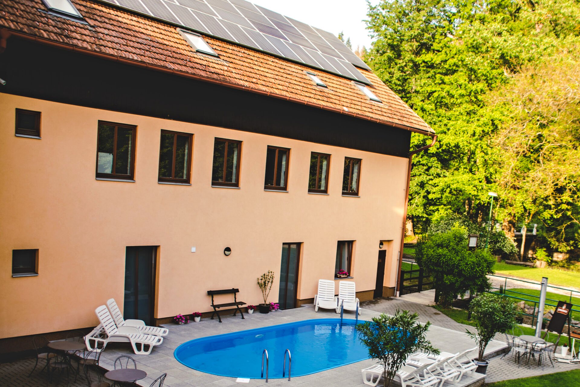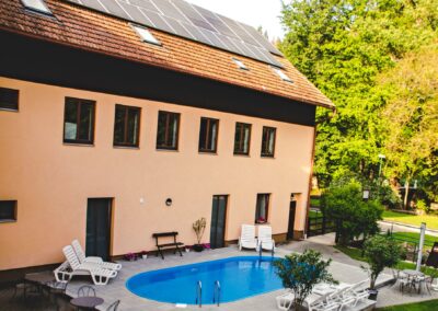 Ve volných chvílích můžete využít klidné okolí penzionu k relaxačním procházkám přírodou, posedět na terase nebo si dopřát odpočinek ve vířivce.
